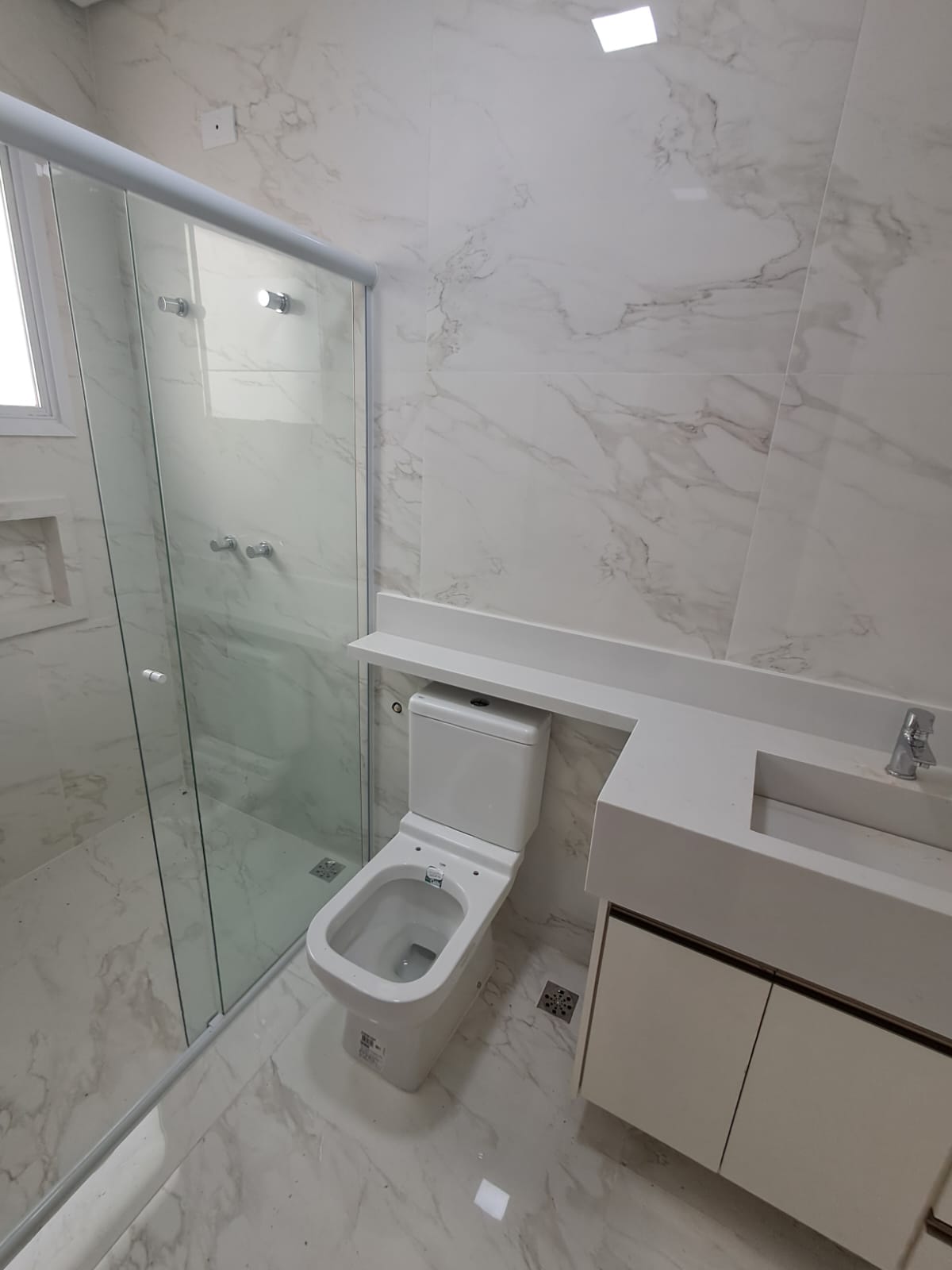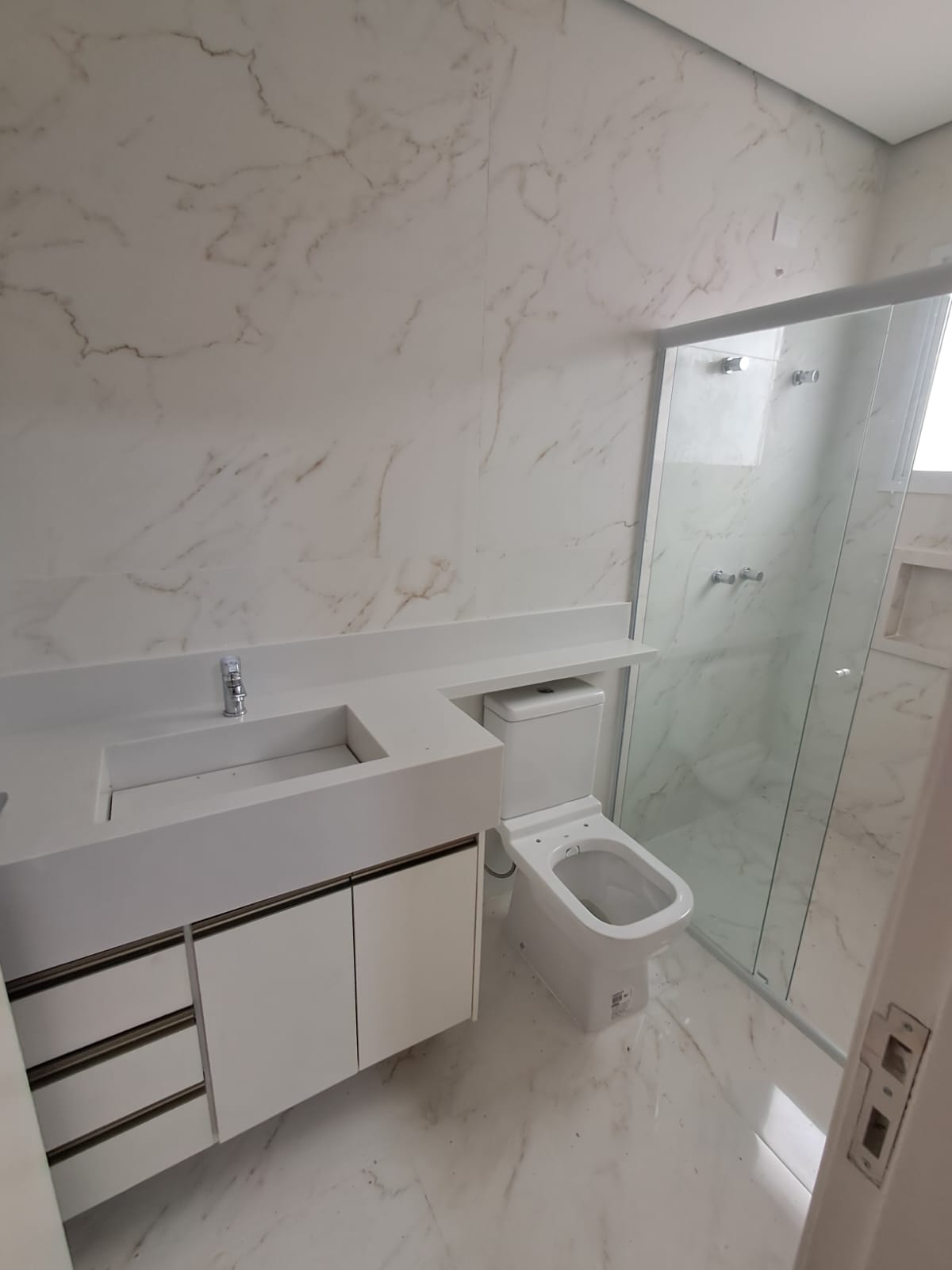Além das três suítes, o imóvel conta com um lavabo social e um banheiro extra na área de churrasco, oferecendo conveniência para momentos de lazer
