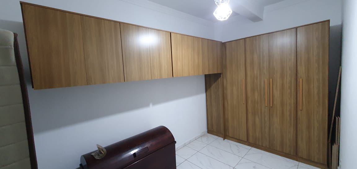 No térreo: 2 dormitórios (sendo 1 suíte), sala, cozinha com móveis planejados, banheiro social, lavanderia e depósito.
